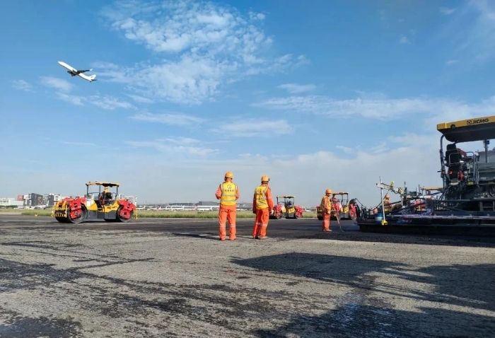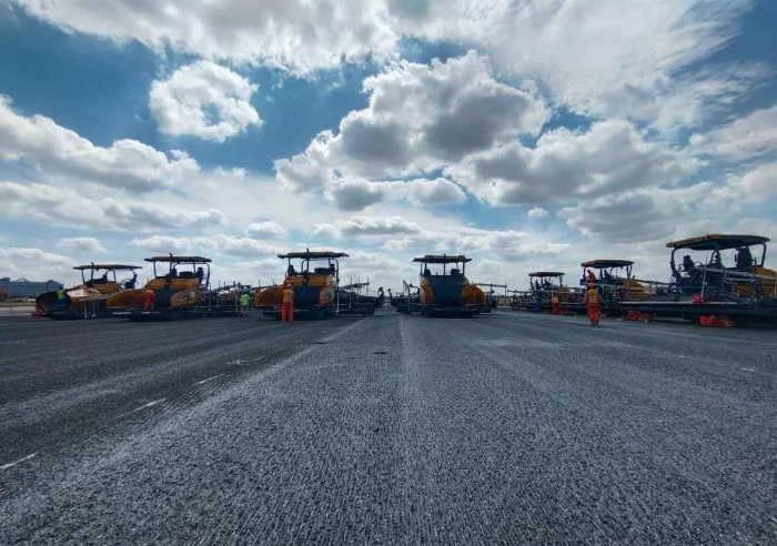 想象一下,航班在西跑道頻繁起降的同時,數(shù)百名施工人員和數(shù)百輛設(shè)備,就在幾百米外忙碌作業(yè)。施工挑戰(zhàn),前所未有的嚴(yán)峻。傳奇,在這短暫的15天一一上演。不過,這傳奇的紙簿上,亦被烙上“徐工金”的身影。徐工成套道路機械,在此項高難度施工中,迎難而上、挑起重?fù)?dān)。