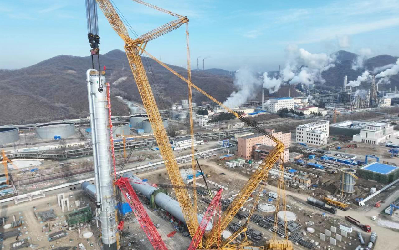 近日,徐工4000噸級履帶起重機XGC88000攜手1250噸級履帶起重機XGC17000現身吉林某大型石化項目現場,聯袂吊裝首臺大型塔器。