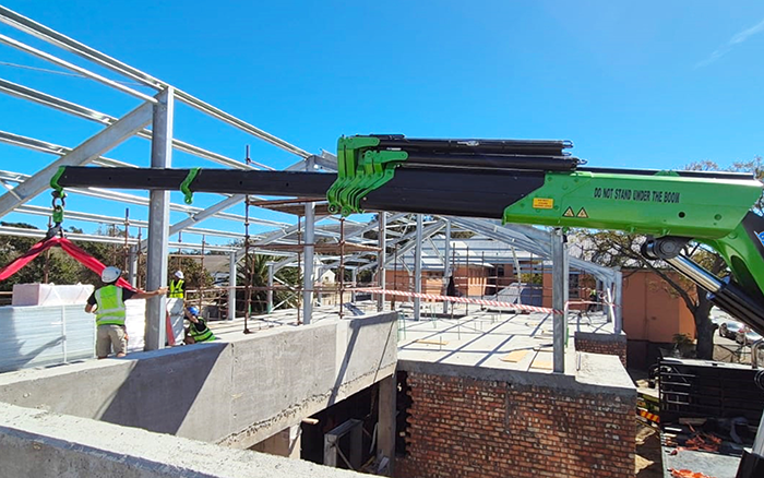 在海外某建筑工地現場可以看到,徐工GSQZ860折疊臂隨車起重機加裝兩節手動臂,輕松跨越建筑物二樓復雜的鋼結構,完成了高處的物料轉運作業,優越跨障能力和穩定作業表現獲得了現場施工人員的認可和好評。