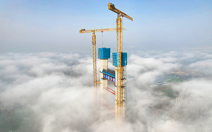 目前,兩臺(tái)徐工超大塔正在進(jìn)行大橋北主塔第26節(jié)施工,主塔以平均每周6米的速度迅速“節(jié)節(jié)長(zhǎng)高”,高度已達(dá)144.5米,高效的施工效率贏得客戶高度稱(chēng)贊。